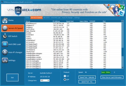 服务器设在澳大利亚,美国,日本,新加坡,加拿大,法国,德国,英国等。有用于设置连接的屏幕截图。